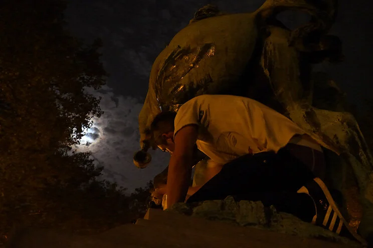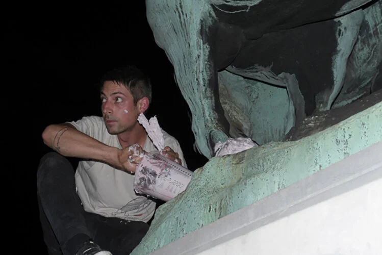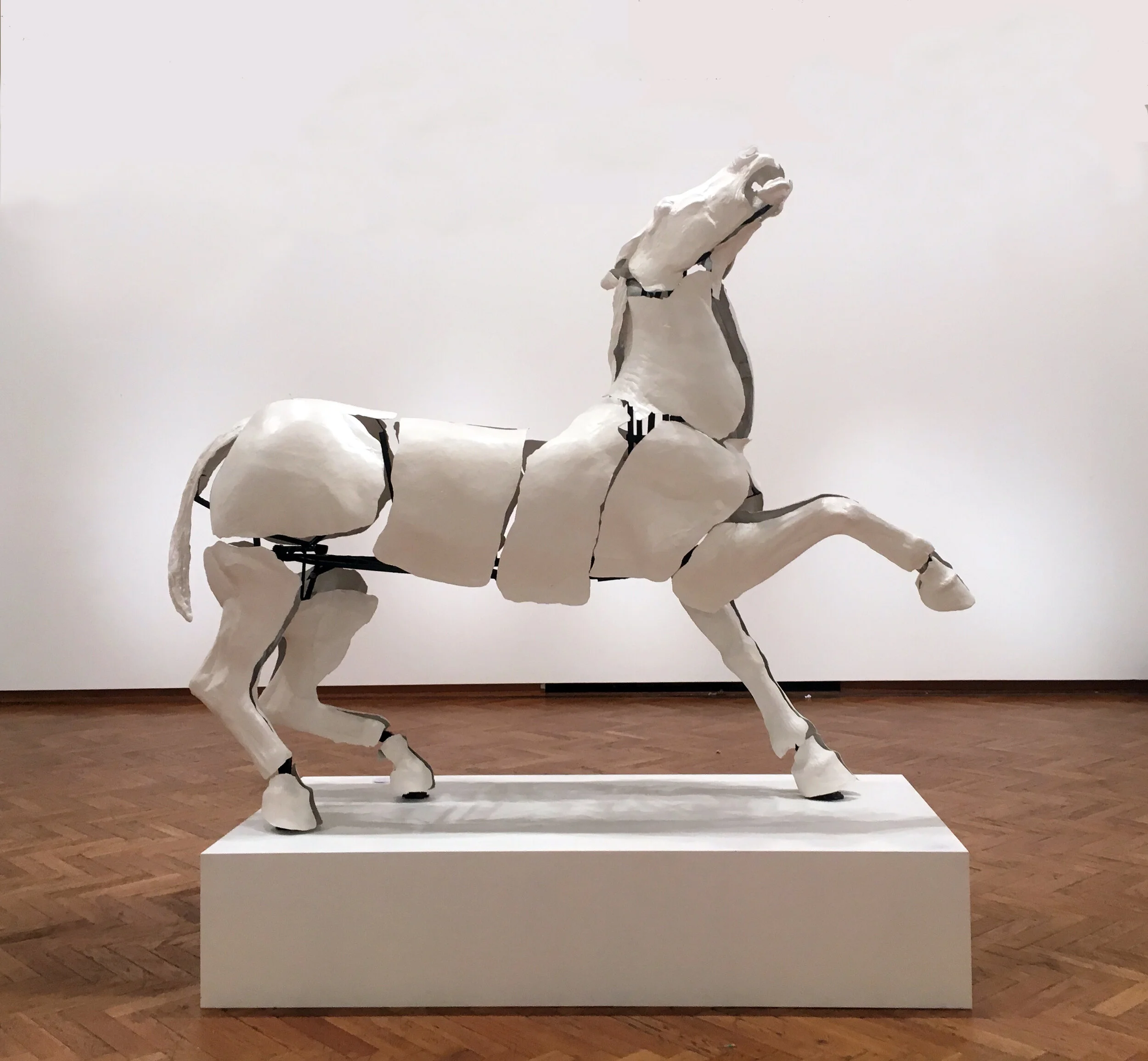 CHEVALS Chevals, 2016, resin, metal, 250x350 x120cm 70x105cm 70x105cm Each fragment of Horses comes from overmoldings of various public bronze sculptures of horses. A series of photographs represent me during the molding process.